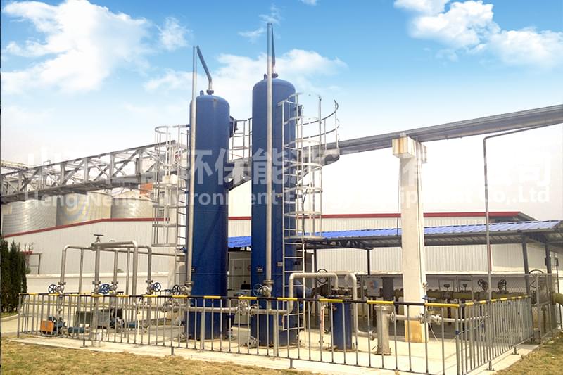 沼氣中含有大量的粉塵、污泥、水分、雜質(zhì)及毒害性氣體(如HCl,H2S,NH3),為達(dá)到設(shè)備利用要求或環(huán)保排放標(biāo)準(zhǔn),需要對原料氣中的氣體進(jìn)行預(yù)處理,如增壓、脫硫、脫水、除塵等。